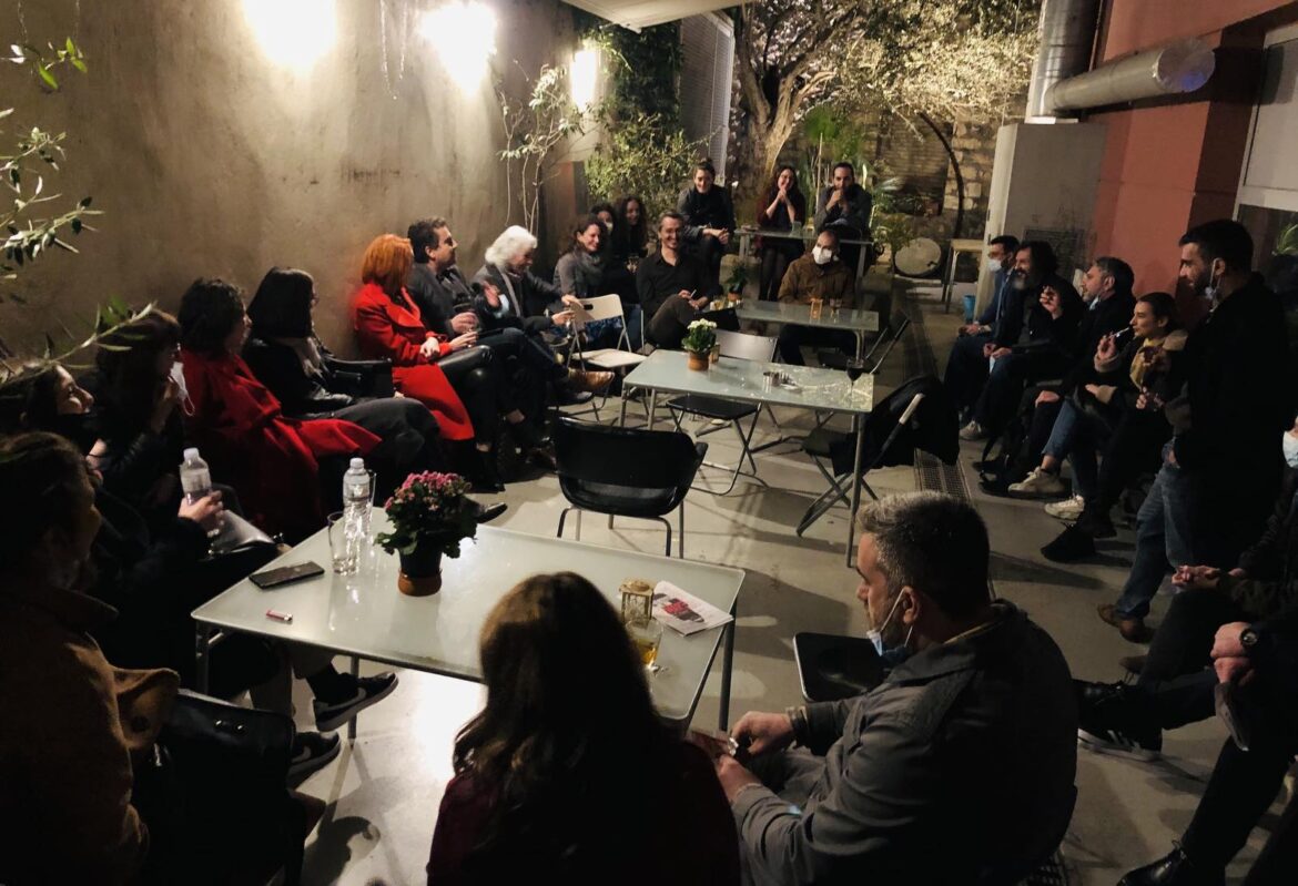 Μετά το τέλος της παράστασης είχαμε την χαρά να συνομιλήσουμε με τους συντελεστές της παράστασης, την Ελένη Ζαφειρίου (σενάριο), τον Κώστα Σταματόπουλο (σκηνοθεσία), τον Δημοσθένη Φίλιππα (ερμηνεία) τον Ορέστη Ζαφειρίου (μουσική), την Άννα Λιανοπούλου (κίνηση).