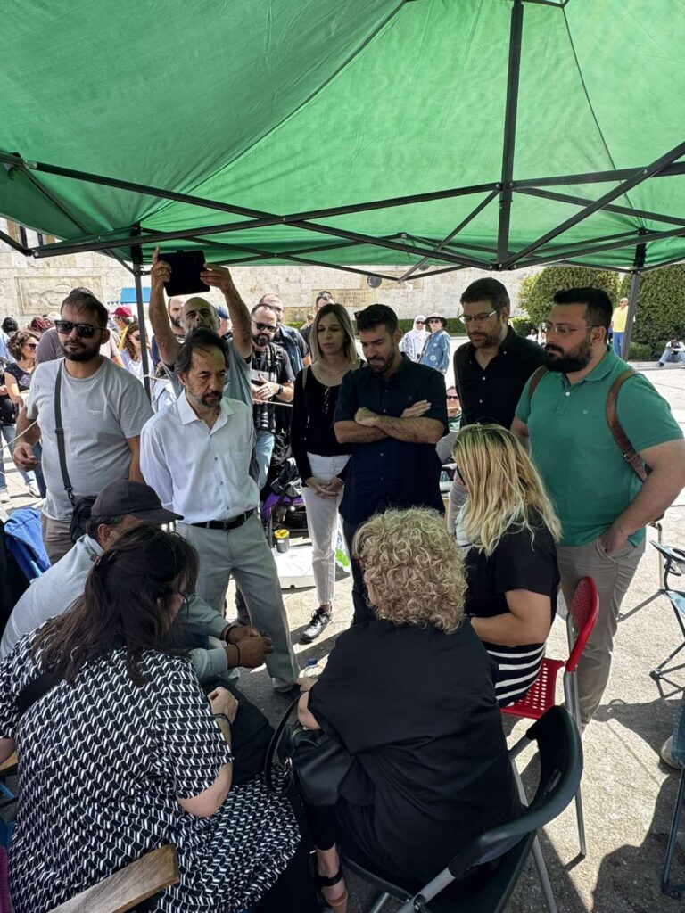 Στο πλευρό του Π. Ρούτσι στο Σύνταγμα, πατέρα παιδιού που σκοτώθηκε στο έγκλημα των Τεμπών και απεργό πείνας, ο οποίος απαιτεί την εκταφή του παιδιού του, βρέθηκε το Σάββατο η αντιπροσωπεία της Αγωνιστικής Συσπείρωσης με τον Αντώνη Αντανασιώτη, καθώς και ο Βασίλης Διονυσόπουλος, πρόεδρος του ΣΜΔ και η Βάγια Γκουνέλα, γεν. γραμματέας του ΣΜΔ, εκλεγμένοι με την Αγωνιστική Συσπείρωση Μισθωτών Δικηγόρων. Τη στήριξη του στον απεργό πείνας εξέφρασε και ο Στρατής Δουνιάς, πρόεδρος του Συλλόγου Δικαστικών Υπαλλήλων Αθήνας.