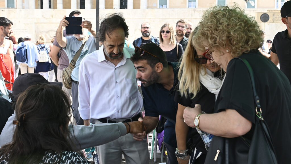 «Βρισκόμαστε εδώ για το αυτονόητο, για το δίκιο. Είμαστε δίπλα σε όλους τους ανθρώπους, που έχουν αδικηθεί. Συζητήσαμε λίγα πράγματα με τον άνθρωπο, τους είπα τη δική μου εμπειρία, για το τι τους περιμένει ακόμα και να έχουν αντοχές και δύναμη».