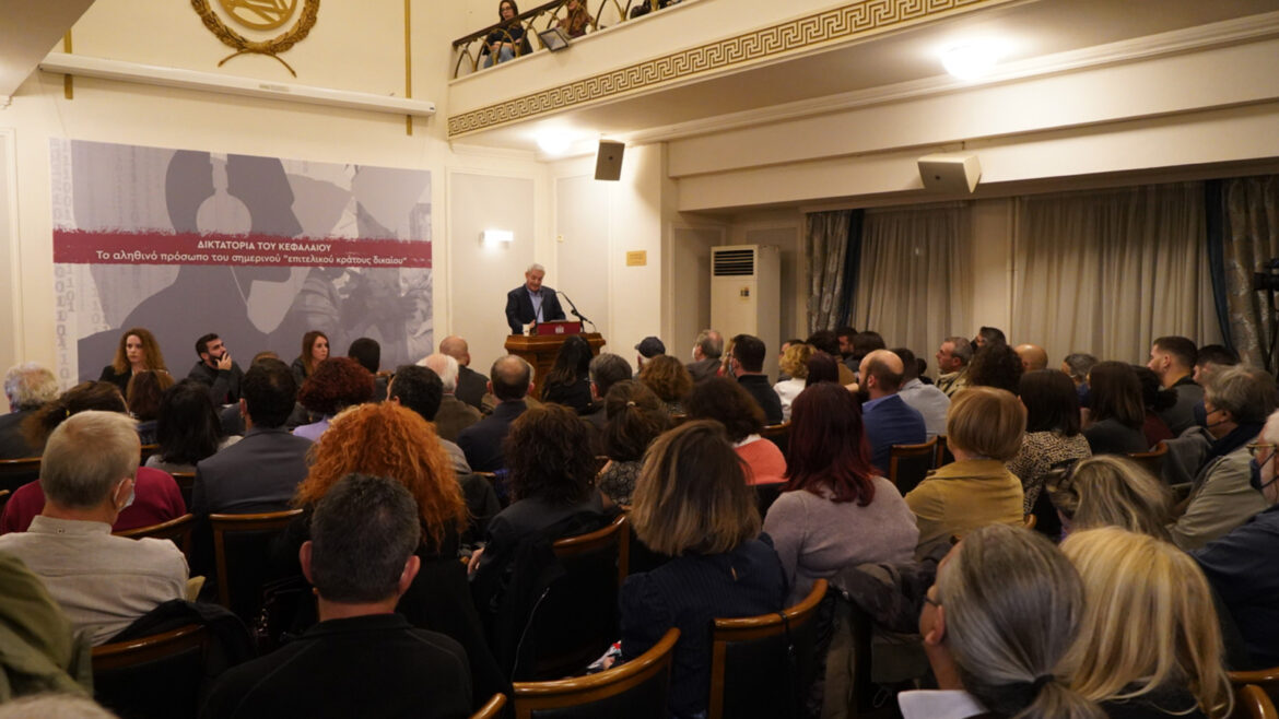 Στην πολύ πετυχημένη ημερίδα του Τμήματος Δικαιοσύνης και Λαϊκών Ελευθεριών της ΚΕ και της Τομεακής Οργάνωσης Δικαιοσύνης της ΚΟΑ του ΚΚΕ, που πραγματοποιήθηκε την Πέμπτη 24/11στην κατάμεστη αίθουσα τελετών του ΔΣΑ, την κεντρική εισήγηση έκανε ο Μάκης Παπαδόπουλος, μέλος του ΠΓ της ΚΕ του ΚΚΕ.
